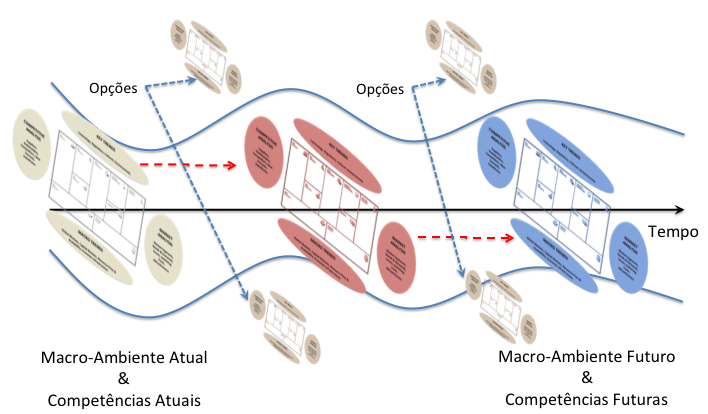 A este modelo devemos adicionar as análises provenientes das matrizes BCG, SWOT e ANSOFF (produto/mercado), que podem ser apoiadas pelo estudo do VPC. O produto final dessas análises é a identificação das competências necessárias e a síntese que pode ser representada num canvas contendo o Modelo de Negócio da empresa, como proposto por OSTERWALDER (Figura –II).