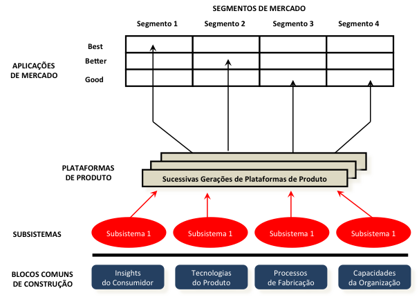 A terceira etapa desse processo éa constituição de portfólios de produtos e serviços, dentro de um conceito de plataformas inicialmente elaborado por MEYER e LEHNERD, que pode oferecer múltiplas opções para múltiplos mercados, contemplando diferentes canais, formas de comercialização e produção, numa visão que pode ser descrita como Good, Better & Best (Figura –III).